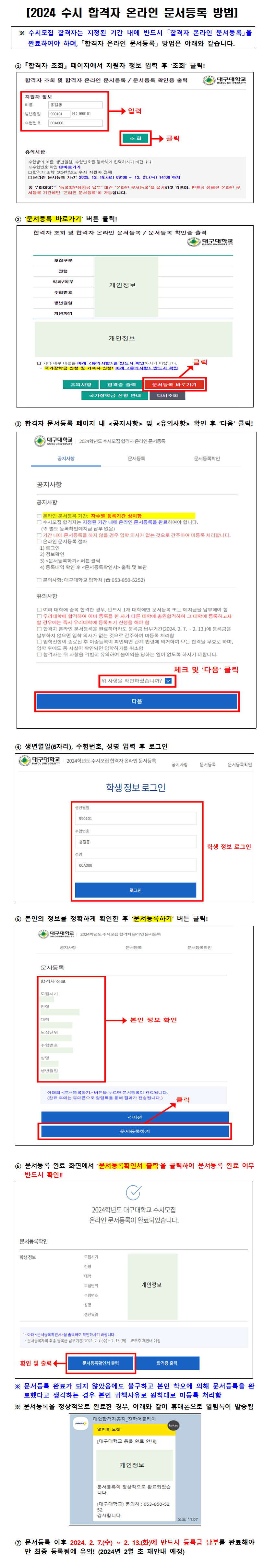 2024학년도 수시모집 합격자 온라인 문서등록 방법 안내