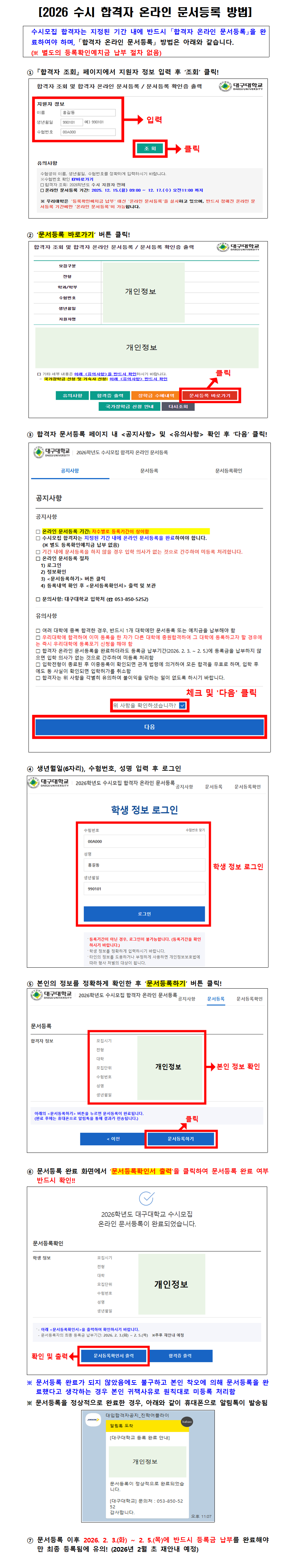 2026학년도 수시모집 합격자 온라인 문서등록 방법 안내